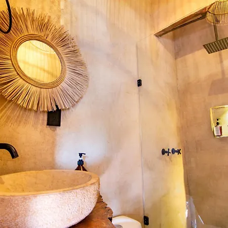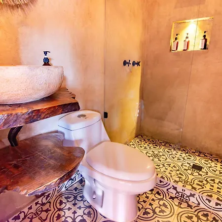 Exclusiva Cabana Con Tina En Piedra, Fogata Y Cine includes a bathroom with a separate toilet and a shower. A dryer and bath sheets are included to enhance your comfort.